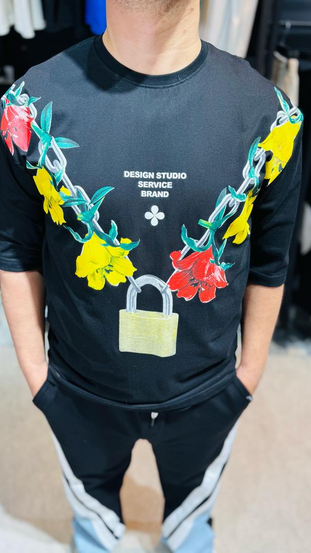 تیشرت طرح گل و قفل